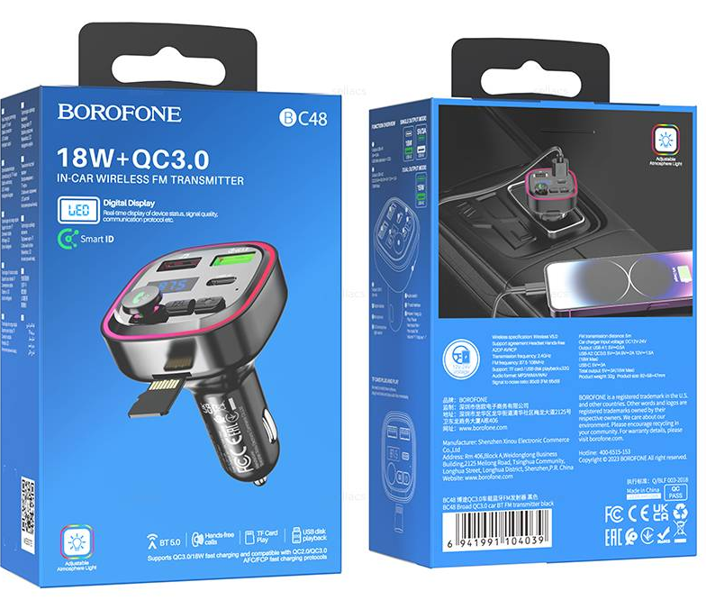 FM TRANSMITTER BOROFONE BC48 PD18W+QC3.0