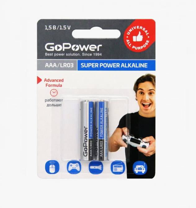 БАТАРЕЙКИ GO POWER ААА ЩЕЛОЧНЫЕ 2ШТ .