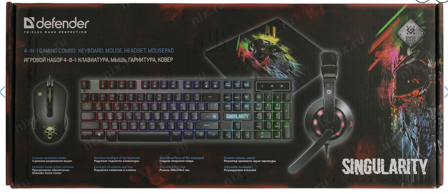 НАБОР ПРОВОДНОЙ ИГРОВОЙ КЛАВИАТУРА+МЫШЬ+ГАРНИТУРА+КОВЕР DEFENDER MKP-118