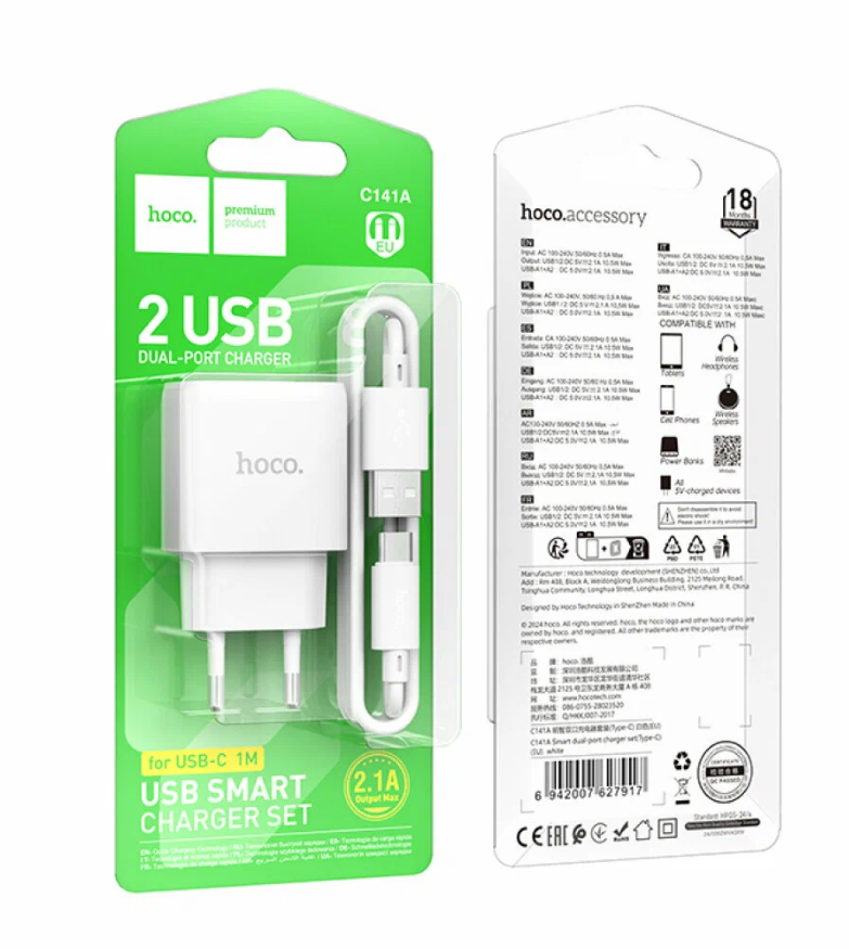 СЗУ TYPE-C HOCO C141A 2.1A 2USB