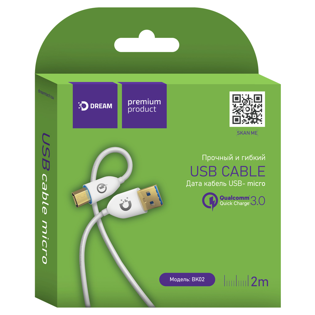 КАБЕЛЬ V8 DREAM BK02 2M 3.0 MICRO
