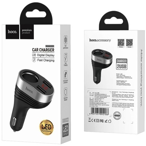АЗУ РАЗВЕТВИТЕЛЬ HOCO Z29 1 ПРИКУРИВАТЕЛЬ 2 USB 3.1A