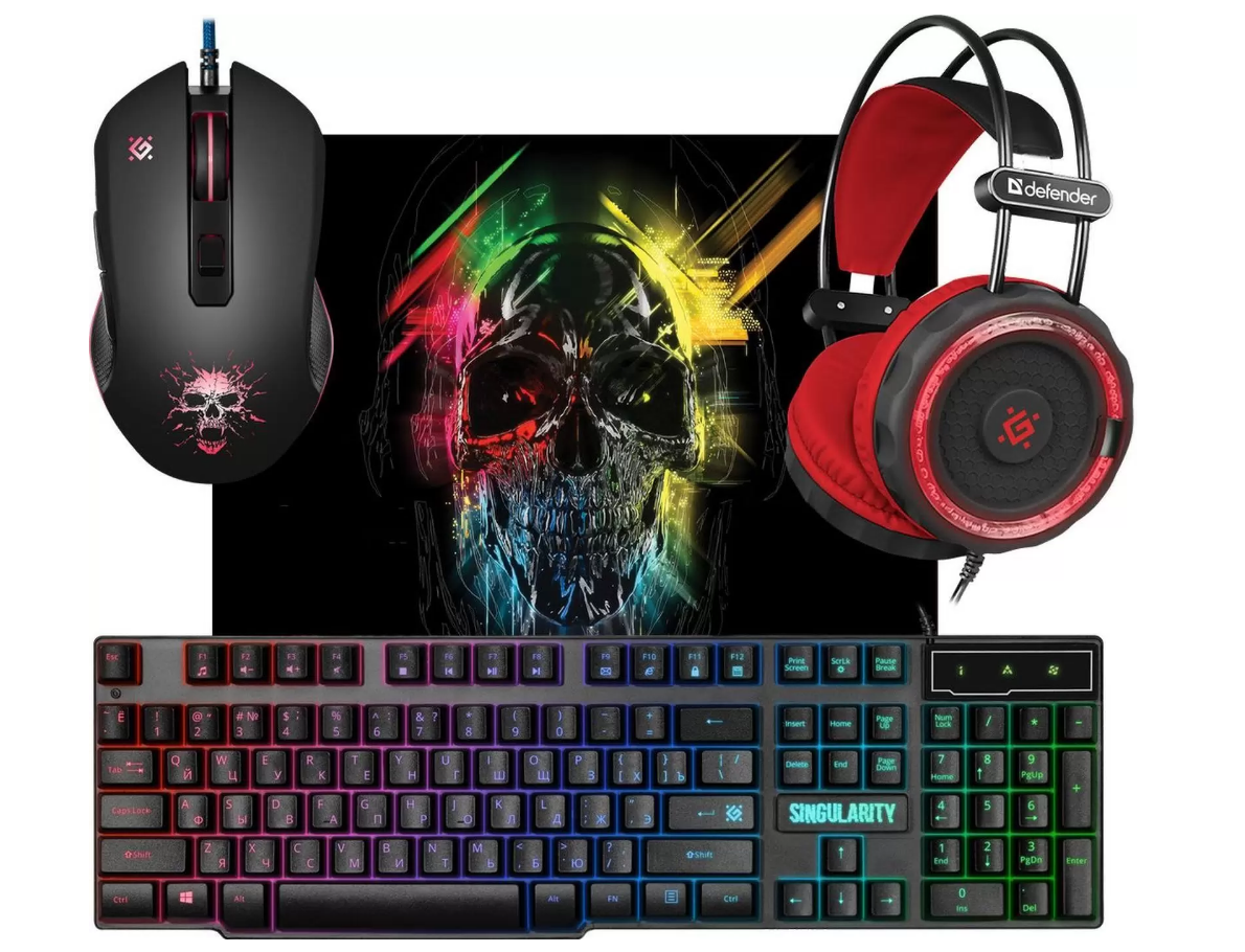 НАБОР ПРОВОДНОЙ ИГРОВОЙ КЛАВИАТУРА+МЫШЬ+ГАРНИТУРА+КОВЕР DEFENDER MKP-118