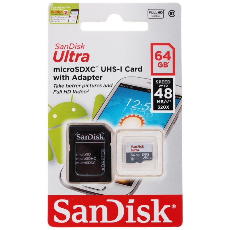 FLASH MicroSD 64GB SANDISK Class10 +SD адаптер