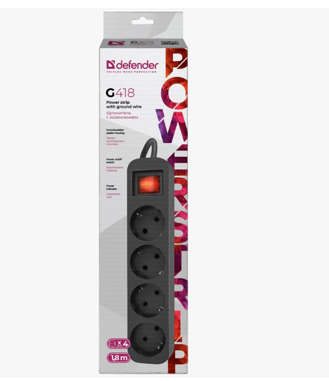СЕТЕВОЙ ФИЛЬТР DEFENDER G418 4 РОЗЕТОК 2200ВТ